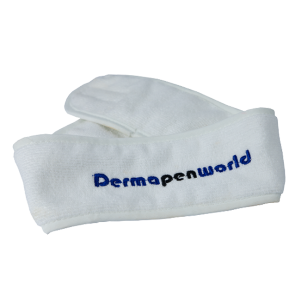 Haarband weiss, Frottée, mit Klettverschluss hinten.