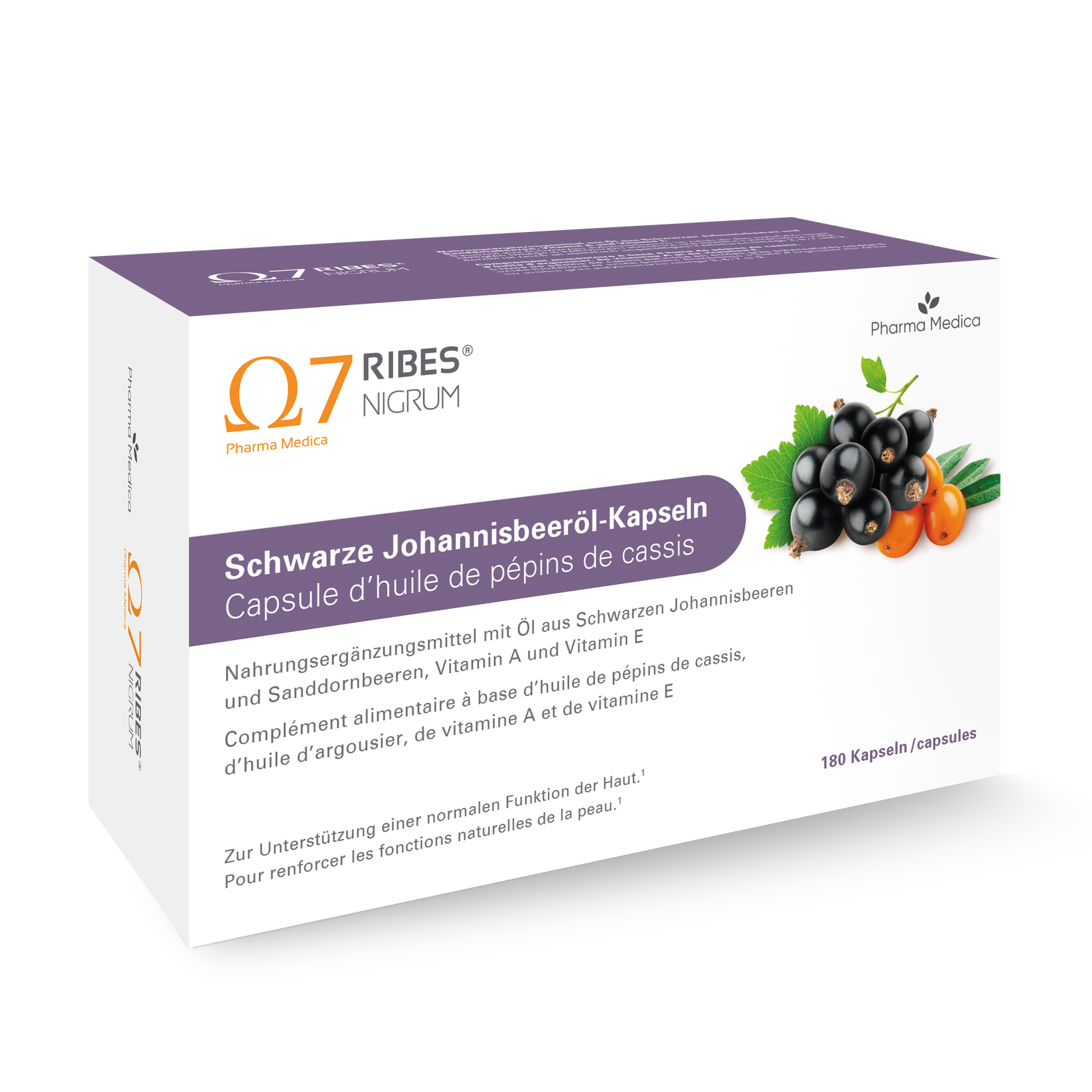 Ω7 Ribes Nigrum® Kapseln mit Öl aus Schwarzen Johannisbeeren und Sanddornbeeren, Vitamin A und Vitamin E.