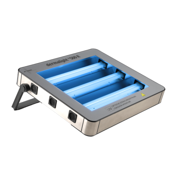 Die integrierte Mikroprozessor-Steuerung ermöglicht die exakte Einstellung der Behandlungszeit. Die Strahler schalten automatisch nach Ablauf der gewählten Behandlungszeit ab. Das Gerät kann wahlweise mit UV-A oder UV-B 311 nm Schmalband-Strahlern ausgestattet werden und ist damit für unterschiedlichste Indikationen geeignet.